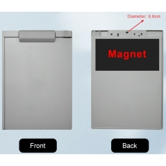 Napravljena od tvrde plastike sa magnetnom površinom sa zadnje strane tako da je moguće postaviti stabilno na bilo koju metalnu površinu. Sa prednje strane se nalazi klipsa koja drži papir i mesto za odlaganje olovke.